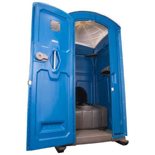 The Echo Zenith portable restroom offers superior strength and durability with its blow-molded double-wall construction and interlocking corner design.